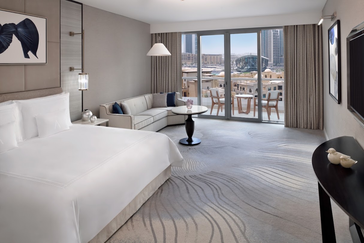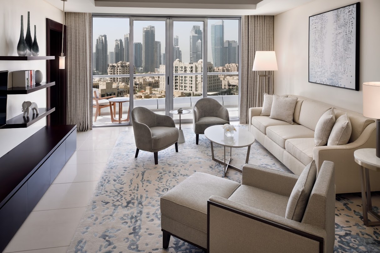 Welcome to The Address Downtown Dubai, the city’s premier five star hotel with a new invigorating and innovative vibe. Dubai’s social scene happens here from our stylish rooms to our unique choice of modern outlets, ideal for everything from social cup of coffee to our fabulous brunches, exquisite dinners and the best late night venues.Set in a striking high-rise building overlooking Dubai Fountain, The Address is a sophisticated hotel providing award-winning accommodation. It features an infinity pool, a 24-hour gym and a panoramic holistic spa.Whether travelling to Dubai on business or leisure, The Address Downtown is the premier all around destination for this vibrant and energetic city. The hotels spacious and bright rooms offer a dynamic sense of style and a striking design that appeals to all tastes across the international travel market.Combining ethnic-inspired decorations with hi-tech facilities, spacious rooms at The Address, Downtown Dubai all include a lounge equipped with satellite flat-screen TVs and iPod docking stations.Guests can choose among 7 different gourmet restaurants, serving a variety of cuisines from Asian to Latino, as well as local Middle Eastern specialities. The in house Neos Bar is located on the 63rd floor and overlooks the ever-changing Dubai skyline.The hotel is located next to Souk Al Bahar. Popular nearby attractions include the notorious Burj Khalifa skyscraper and the Dubai Mall, the greatest in the world. A limousine shuttle service is available upon request and airport transfers can also be arranged. Private parking is free.