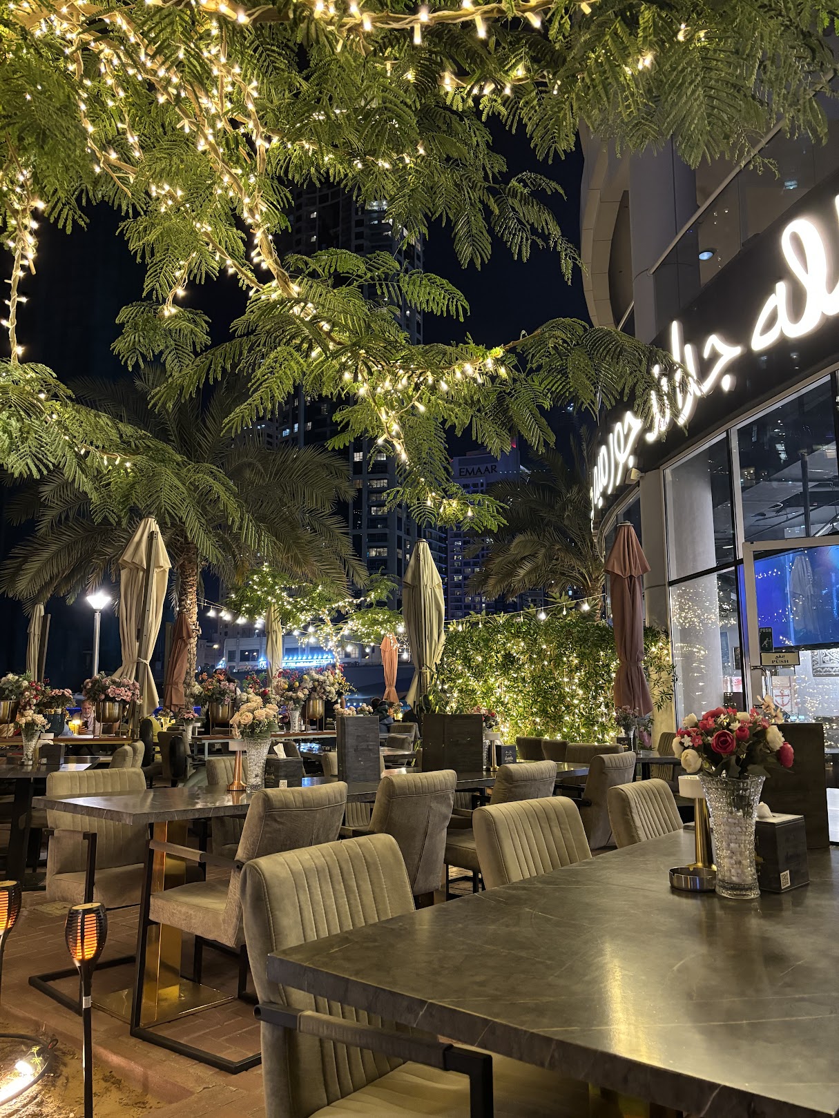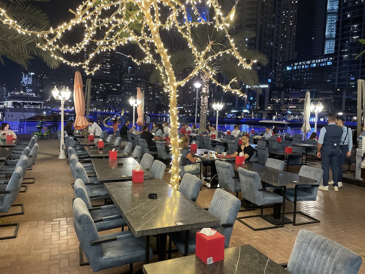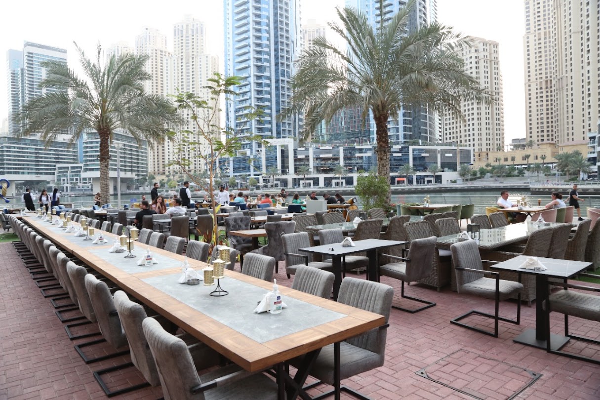 Ahla Tallah Grand Gourmet Restaurant with A Breathtaking View In Dubai Marina offering Special International And Oriental Menu.