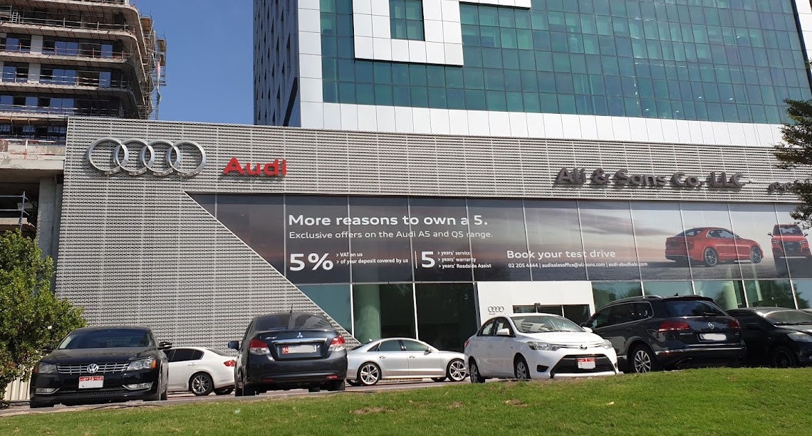 Audi Abu Dhabi represented by Ali & Sons Motors Co. L. L. C. is the official Audi importer for Abu Dhabi and Al Ain and has been for nearly 20 years, it has achieved such significant results through investment in its new car showroom which has one the most prestigious locations in the Emirate on the Corniche and has recently undergone a AED 1.5 million refurbishment to be compliant with the latest Audi standards and in the after-sales facilities based in Mussafah which opened in 2007. Ultimately the results have come from the professional and highly competent Audi team within Ali & Sons Motors Co L.L.C Motors Division which is a result of participation in Manufacture training programmes giving Audi Abu Dhabi 3 Certified Audi Sales Executives with a full team of certified executives planned by the end of 2009 along with trained Audi Technicians and Service Advisors. The latest development for the Audi brand in Abu Dhabi by Ali & Sons Motors Co L.L.C is being the first importer in the middle east to introduce the Audi Approved :plus used car programme to give further reassurance to customers when purchasing a used Audi, the showroom is located in a new facility in Mussafah.