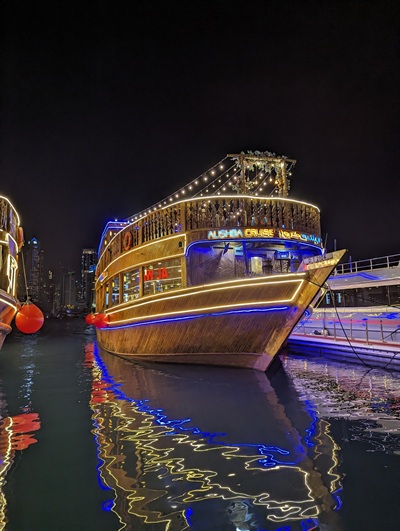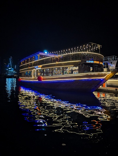 Alishba Dhow Cruise offers a premium dhow cruise experience in Dubai Marina, featuring an international buffet dinner, live entertainment, and breathtaking skyline views. Ideal for families, tourists, and corporate events, Alishba combines traditional Arabian charm with modern comfort to create an unforgettable evening on the water.