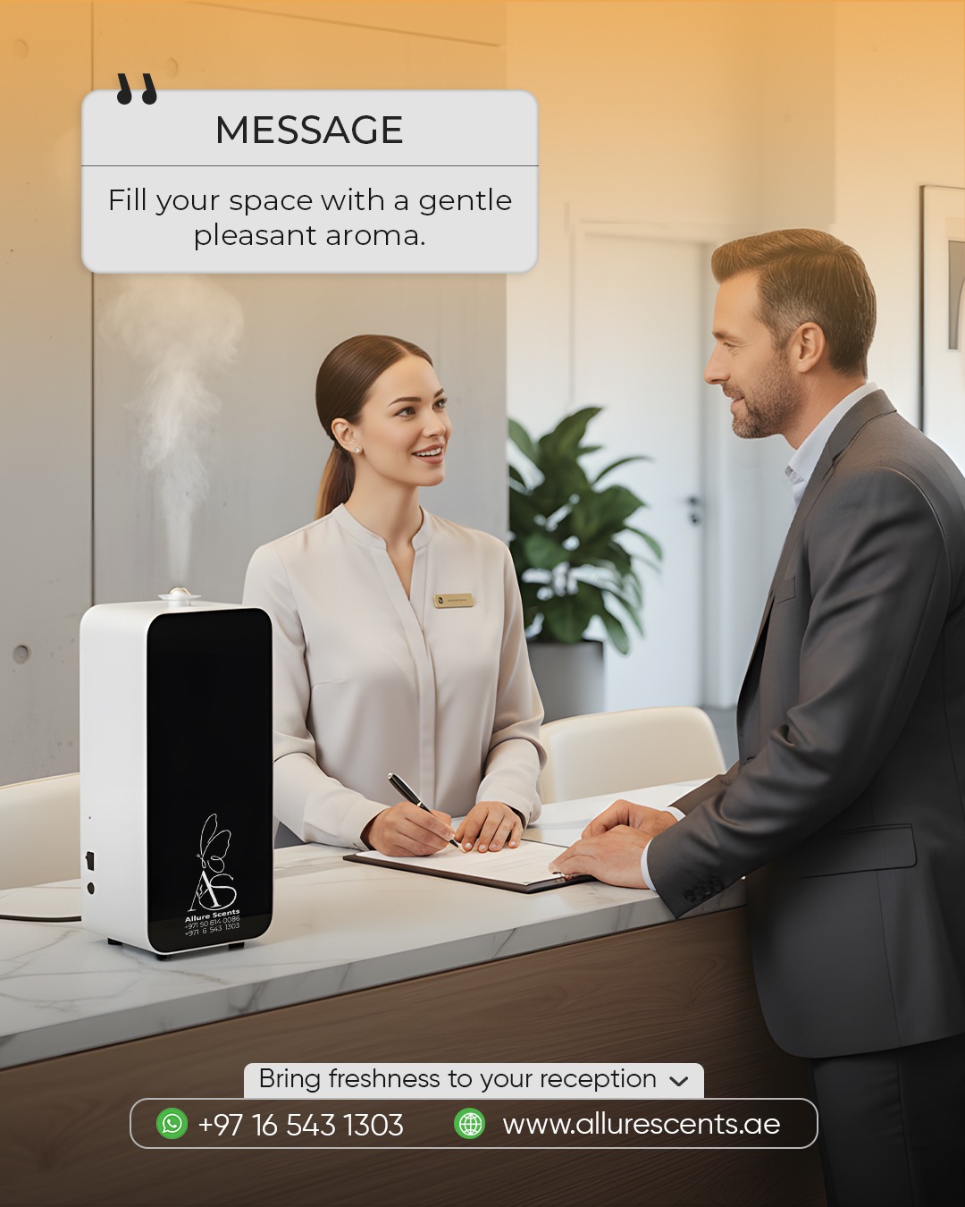 Allure Scents provides professional aroma branding, hotel scenting, commercial fragrance systems, office scenting, and home fragrance solutions across the UAE. Offering premium diffusers, customizable fragrances, and reliable after-sales support.