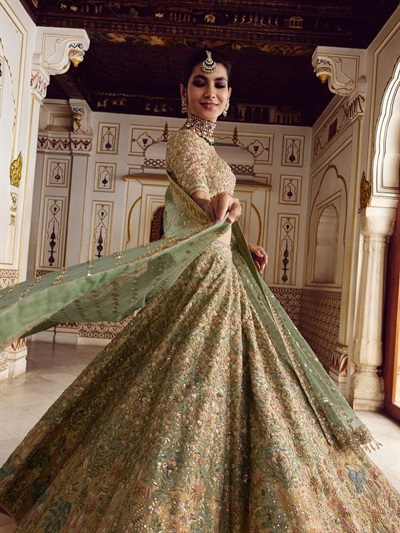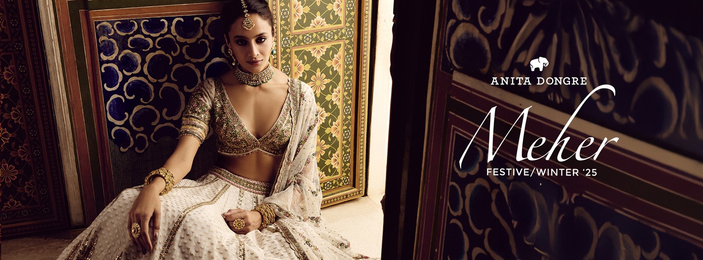Inspired by Rajasthan’s rich heritage, Anita Dongre showcases Indian aesthetics with a modern sensibility in her designs for globetrotting brides and grooms.