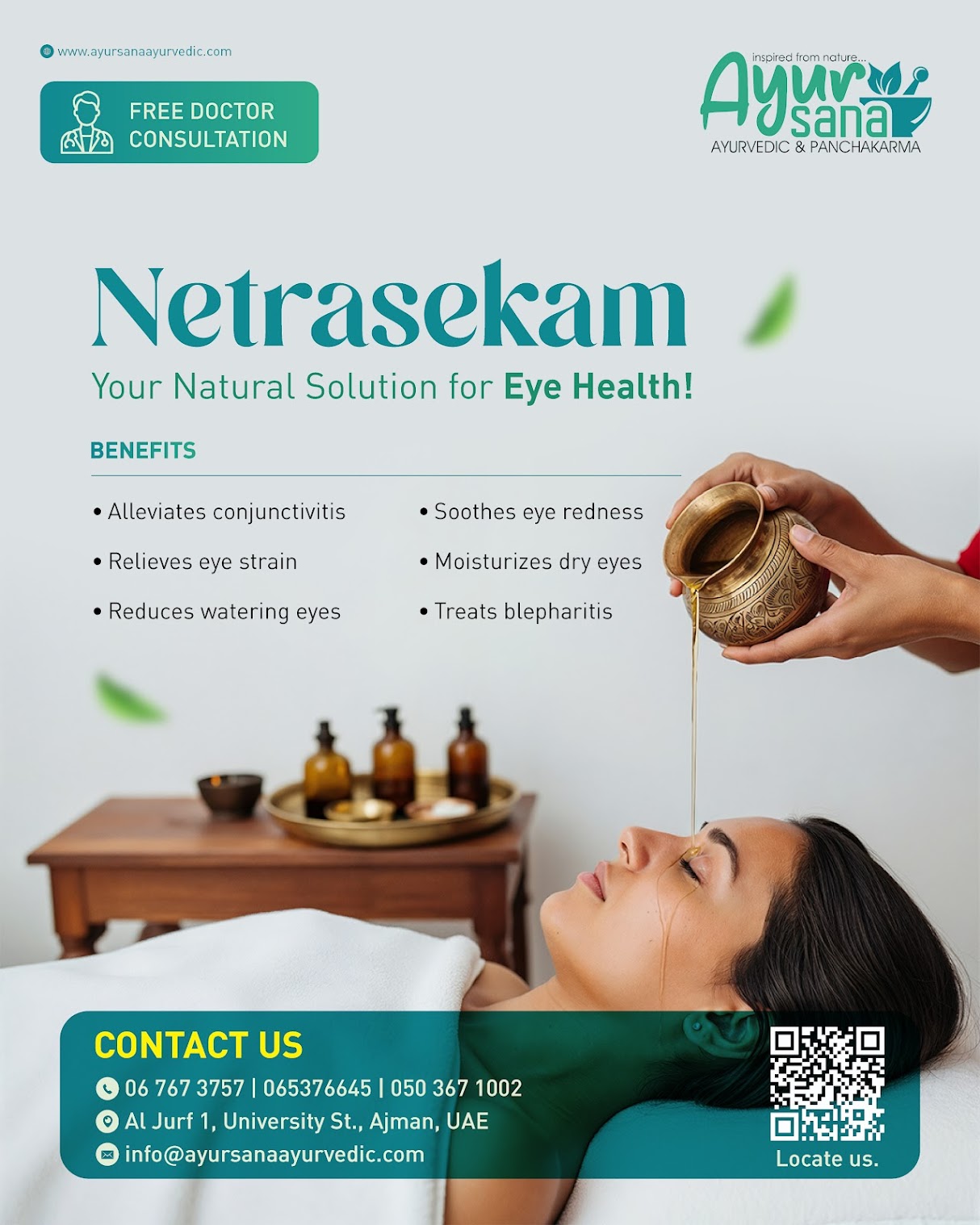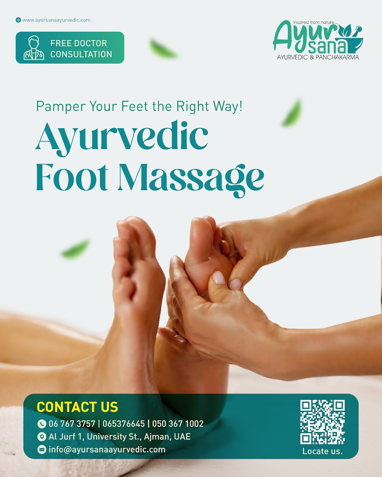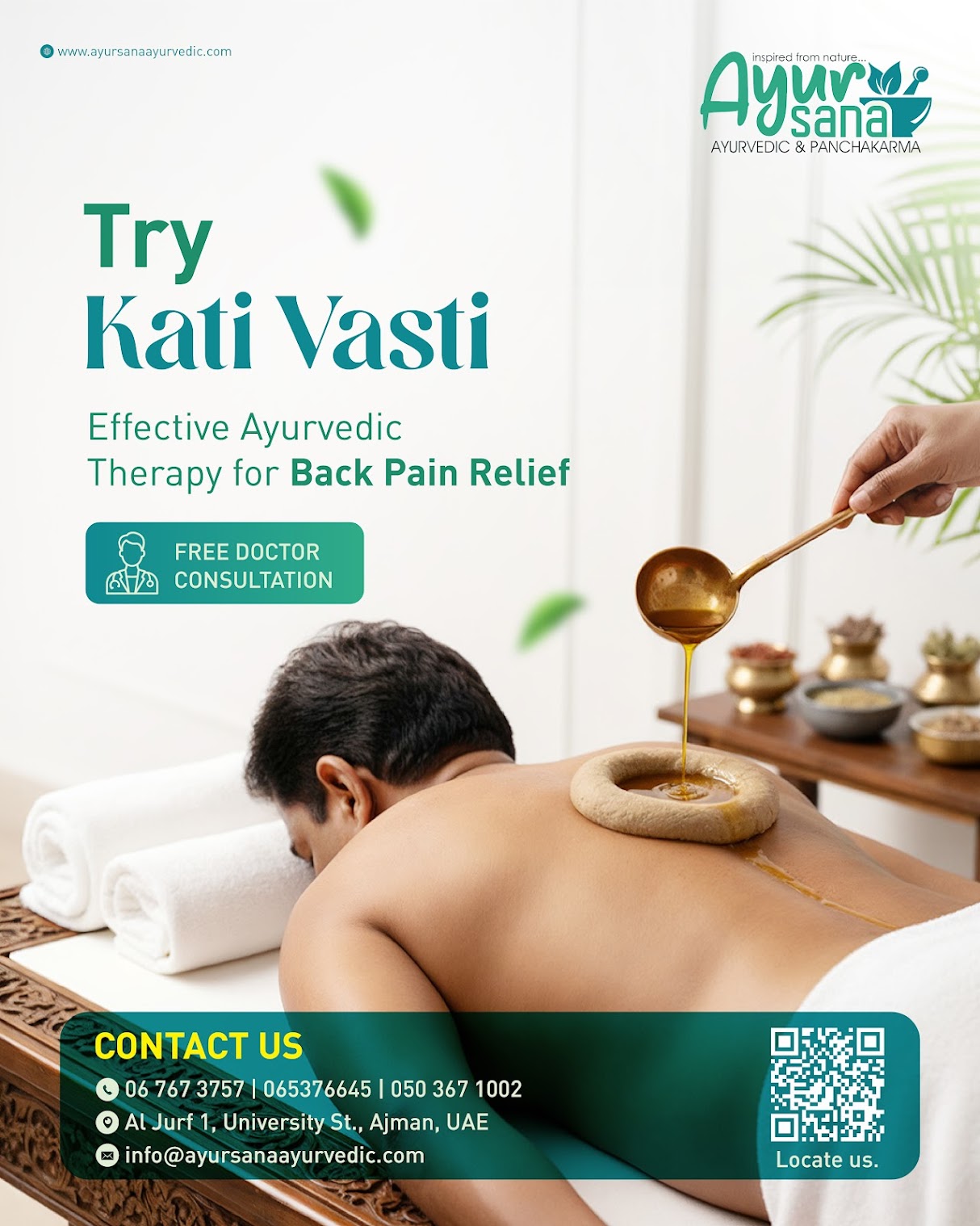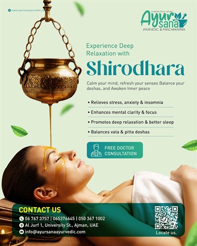 Ayursana Ayurveda & Panchakarma offers authentic Ayurvedic services focused on natural healing and wellness. As the best Ayurvedic center in Ajman, we provide Ayurvedic consultations, Panchakarma therapies, Abhyanga full body massage, Shirodhara treatment, Kizhi massage, treatments for back pain, skin and hair care, weight loss programs, postnatal massage services, and stress relief therapies. Our services are designed to restore balance, improve health, and support long-term well-being through Ayurveda.