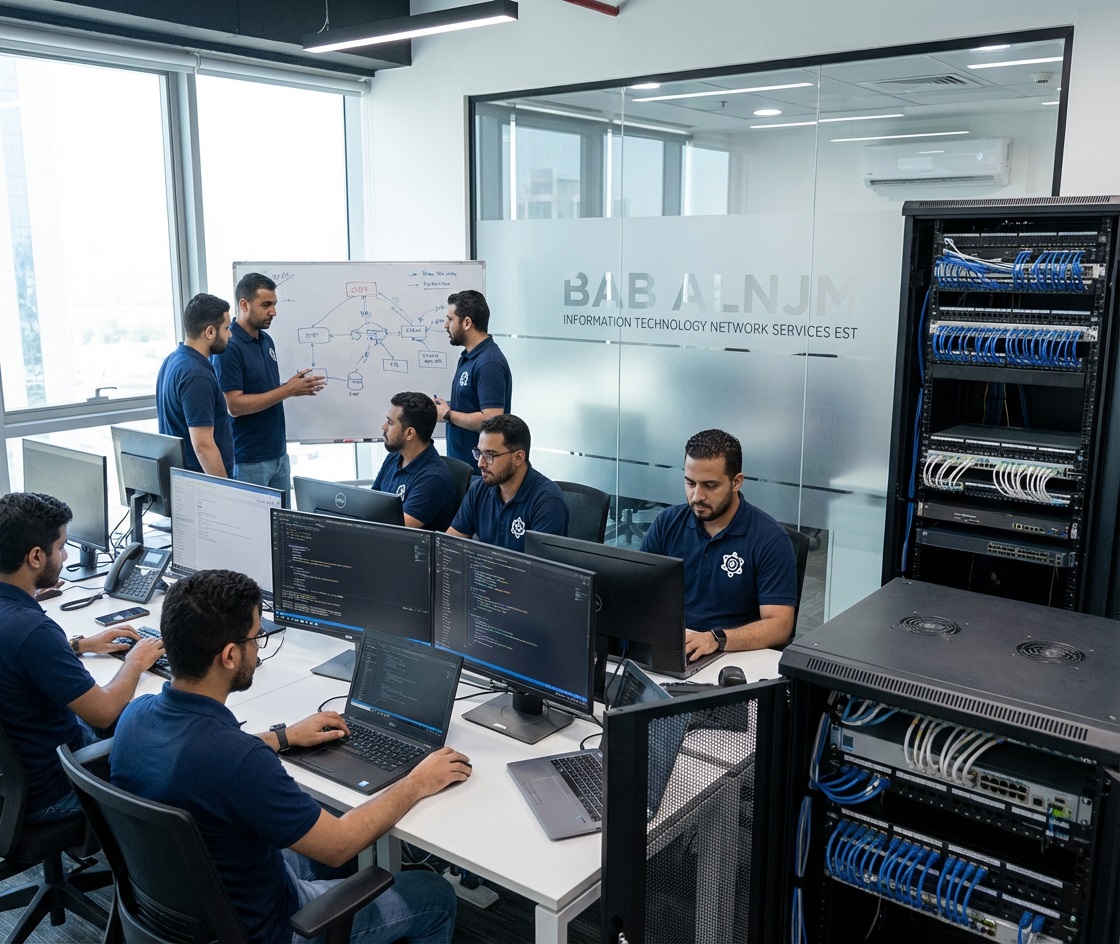 Bab Alnjm Information Technology, we stay ready around the clock to support businesses with reliable, practical IT solutions. Whether it’s network setup, system maintenance, cybersecurity, or full in