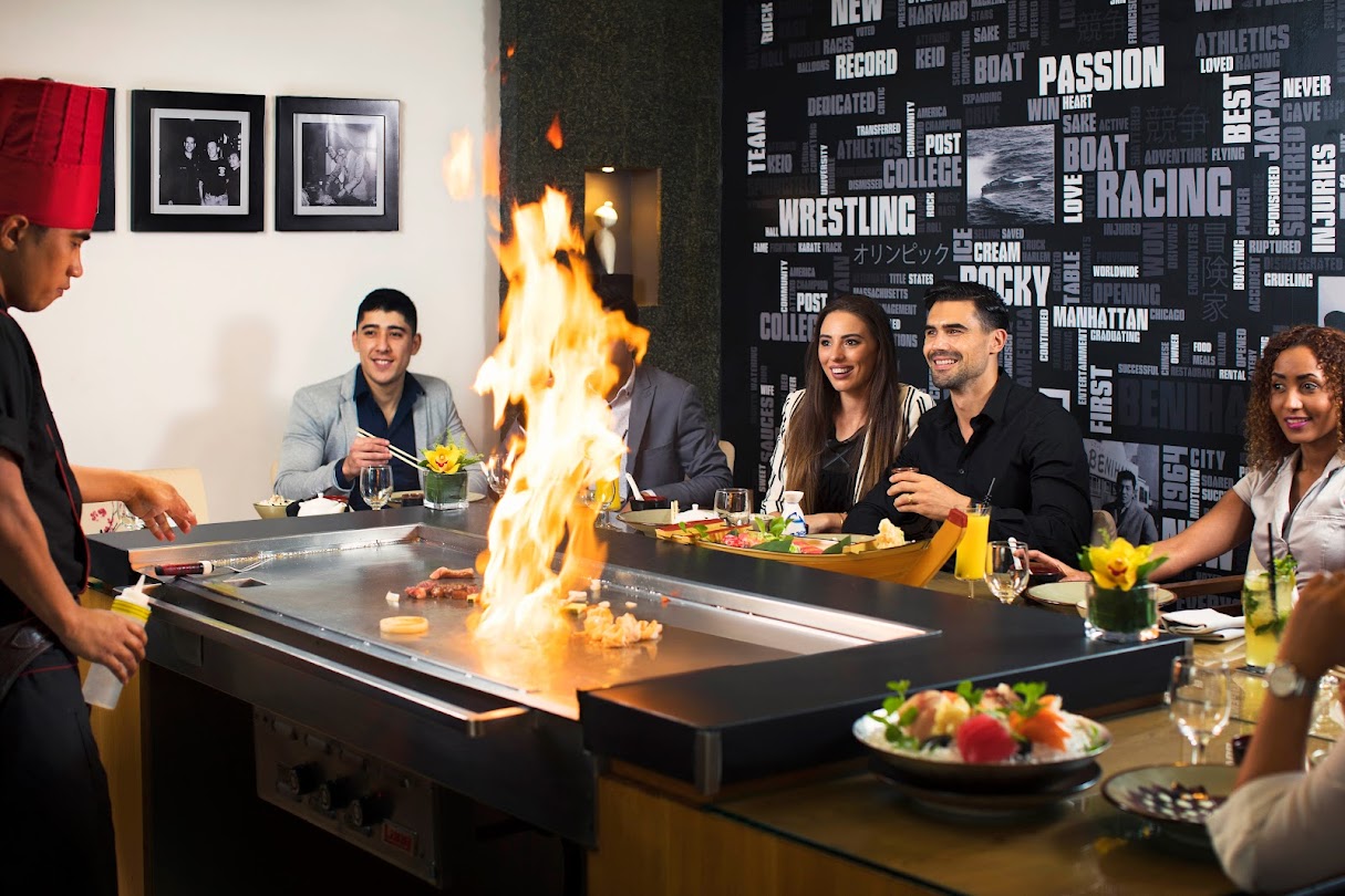 Rediscover the personalized experience of having your choice of succulent seafood, tender chicken, juicy steaks, and garden-fresh vegetables grilled to delicious perfection in an extraordinary theater that will feed the senses and entertain the appetite. At the world famous Benihana Restaurant, a meal is a staged experience. Our skilled chefs use the freshest of ingredients as they perform at your teppan table. You may prefer to have a saketini at the sushi bar as you watch your sushi being rolled to order or your ramen simmering in our window-framed open kitchen. Indoor as well as outdoor terrace seating is available.