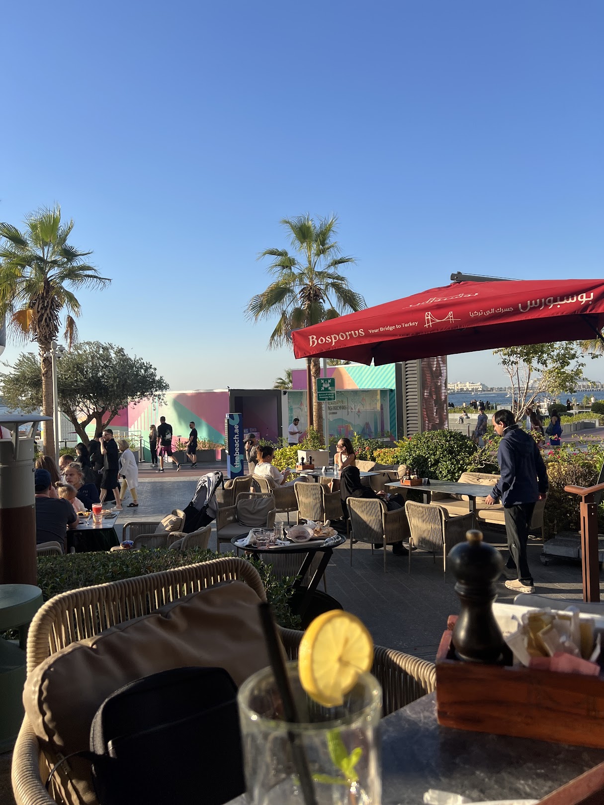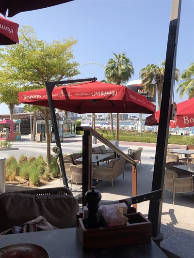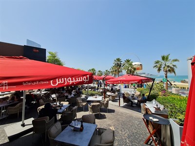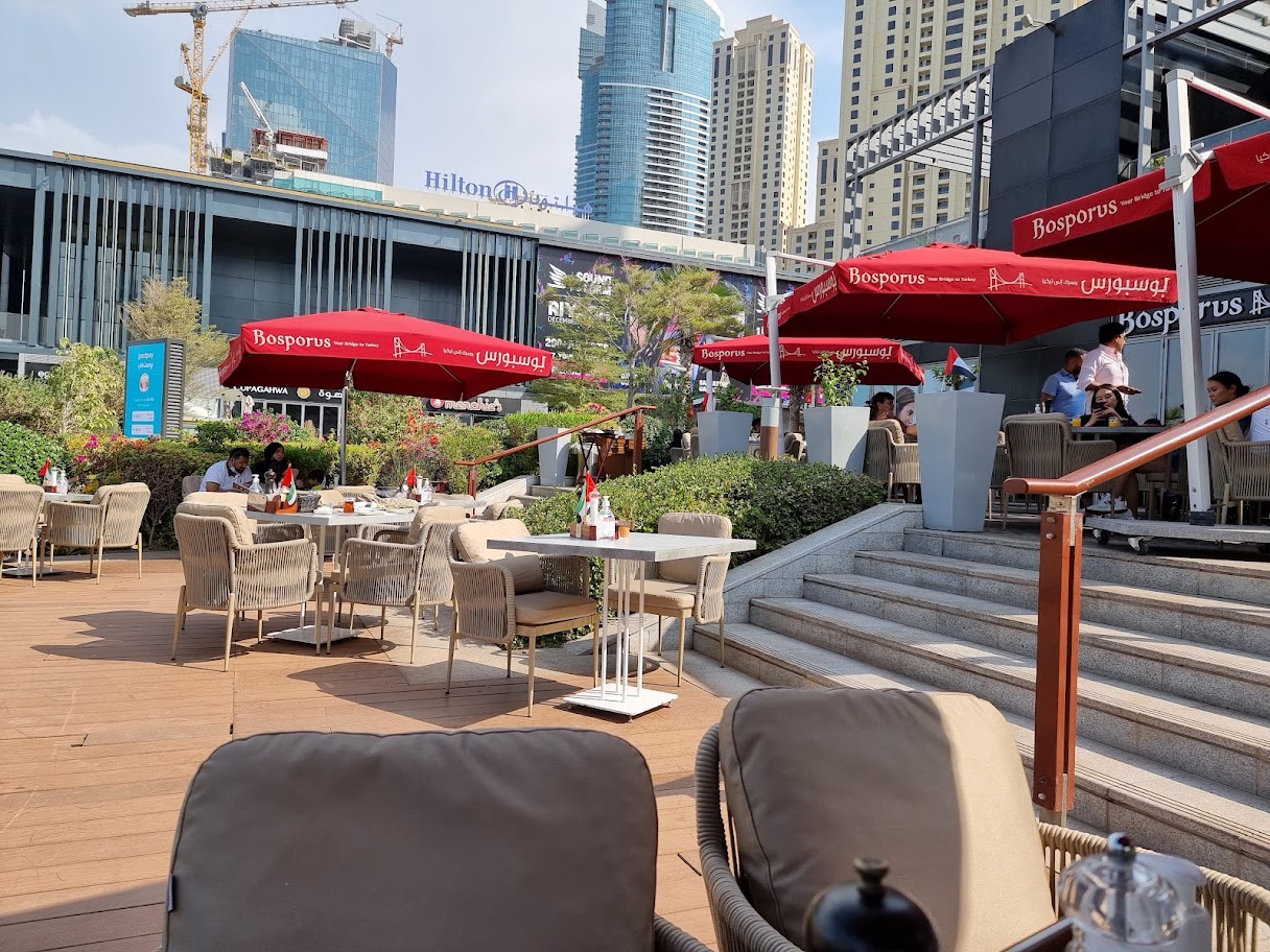 For those seeking a dining experience directly on the beach at Jumeirah Beach Residence, Bosporus the Beach is a unique destination for both individuals and families. With fantastic views of Dubai Eye, one of the city's newest attractions, and outdoor dining on the beach right next to it, this spot is ideal for commemorating important occasions and creating lifelong memories. You may eat while taking in the sunset. It features a relaxed, contemporary atmosphere with a delectable cuisine of our specialties and a variety of our well-known shisha flavors.