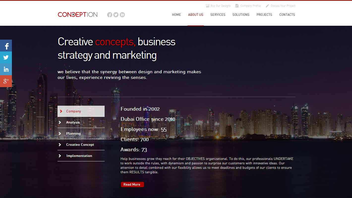 Conception is a digital creative agency that combines the responsiveness and competitiveness of a small structure, while offering a wide range of services and complementary skills.With over 12 years of experience in the Branding & Digital Marketing industry we decided to bring our skills and expertise in design and development to found Conception.