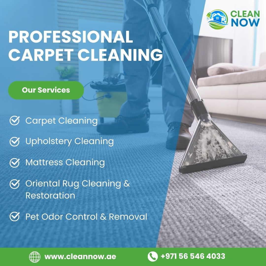 Give your home the freshness it deserves with our premium carpet cleaning in Dubai. At Clean Now, we specialize in restoring the beauty of your carpets through advanced deep-cleaning techniques that effectively eliminate dust, stains, allergens, and odors. Our expert team ensures every fiber is cleaned with precision, leaving your carpets looking brighter and feeling softer. We understand how important hygiene is for your family, which is why our carpet cleaning in Dubai services are designed to deliver long-lasting cleanliness. From modern homes to luxury villas, we offer tailor-made solutions that guarantee superior results every time. Whether it’s a high-traffic area, stubborn stains, or general dirt buildup, we have the right methods to make your carpets look as good as new. In addition to carpets, our services extend to upholstery, mattresses, and oriental rugs—ensuring your entire home stays fresh and spotless. We also provide efficient pet odor control and removal, giving you a clean and pleasant indoor environment. With Clean Now, you enjoy reliability, professionalism, and top-quality service from start to finish.