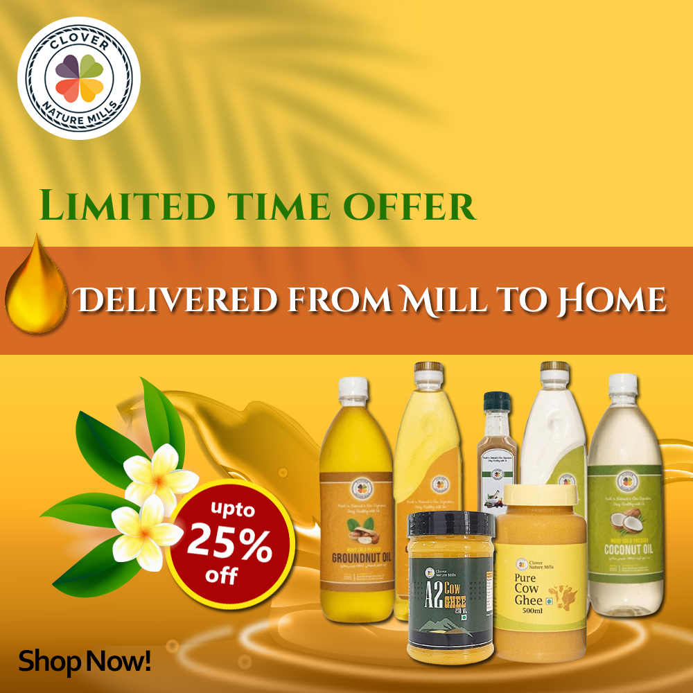 Clover Nature Mills is a UAE-based company dedicated to providing high-quality, natural, and organic food products. Our offerings include traditional cold-pressed oils, flours, spices, nuts, dried fruits, seeds, and specialty items such as pure cow ghee and forest honey. Emphasizing the health benefits and purity of their products, Clover Nature Mills aims to promote a wholesome lifestyle.
