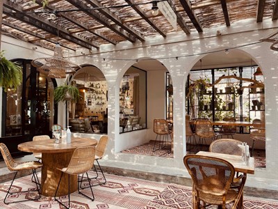 Since its 2012 opening, Comptoir 102 has solidified its reputation as one of the city's top concept stores. With its kitchen, lounge, garden, and terrace that blends fashion, beauty, home goods, and an organic café, the area has been hailed as a home by international travel guides and fashion magazines. With its carefully chosen diverse mix of furniture, fashion, and interior design from around the world, the concept has become a favorite for healthy dining and a hidden gem for discriminating consumers. The store is a small haven away from the shopping centers, tucked away between palm trees and the sea in the center of old Jumeirah. The owners have completely renovated the original structure, which was modeled by Californian villas with Moorish characteristics from the 1970s.