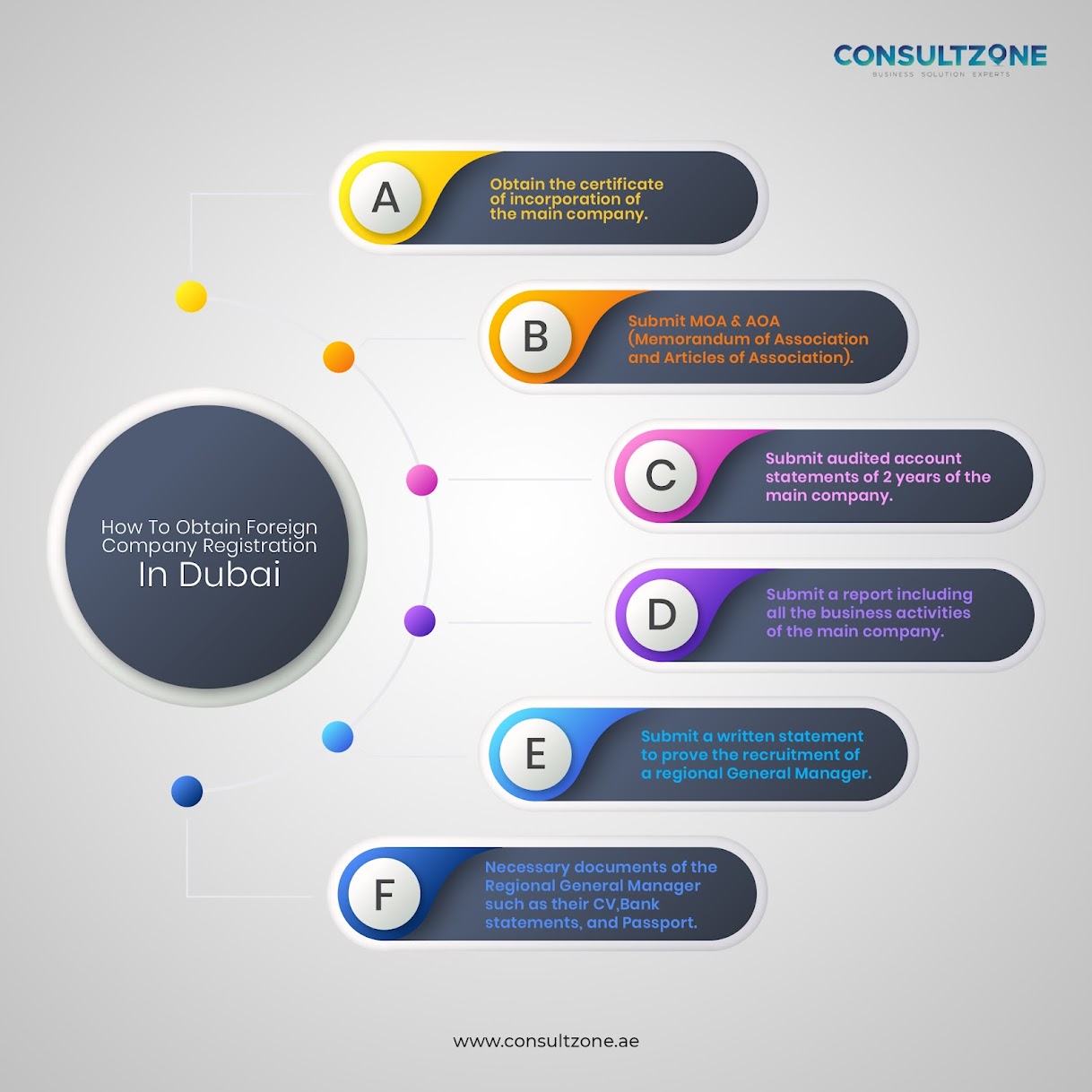 Consultzone is a premier business consultancy based in Dubai, specializing in corporate services. Committed to fuelling growth and guiding entrepreneurs in establishing successful ventures in the UAE, Consultzone is the driving force behind business success. With expertise in the challenges of starting a business in the UAE, we offer comprehensive support to navigate the complex landscape of business setup. Our services include new entity incorporation (business setup in Dubai), visa processing, office solutions, VAT, tax, accounting, and premium banking assistance. Registered and licensed by the Government of Dubai, Consultzone is authorized to establish onshore entities in the mainland and is an official partner for offshore and free zone entities. Their holistic approach ensures complete solutions, VIP processes, and excellent value for every dirham spent, along with investment and real estate advisory.
