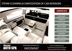 At Mangrove Auto Spa we are all about Steam Cleaning of Car Interiors. We have loads of experience of Steam Cleaning Carpets, Leather and Fabric Upholstered Sofa Seats, Mattresses and Curtains etc. th