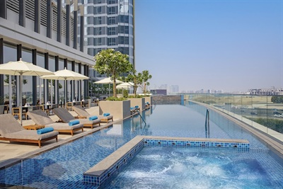 Embassy Suits is fifteen minutes from Dubai International Airport and is situated in Business Bay. Both connected rooms and large suites are available at our hotel. Savor our complimentary evening reception, a custom-made breakfast, and five-kilometer access to the Dubai Mall and Burj Khalifa. We offer 850 square meters of conference and event space, which includes the Fursa Ballroom.