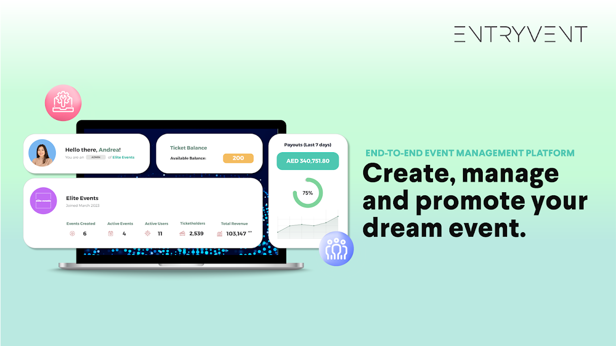 Entryvent delivers an all‑in‑one event management platform with tools to create, manage, and promote events end‑to‑end: ticketing & online + onsite registration, access control, badge printing, attendee tracking, branded event pages and embeddable widgets, automated emails, and real‑time analytics - all with transparent, scalable pricing and no hidden fees.Effortlessly manage attendee registrations, ticketing, check-in, badge printing, access control, lead retrieval, etc. Plus enjoy services such as staffing, DTCM permit support, event rentals, & more.
