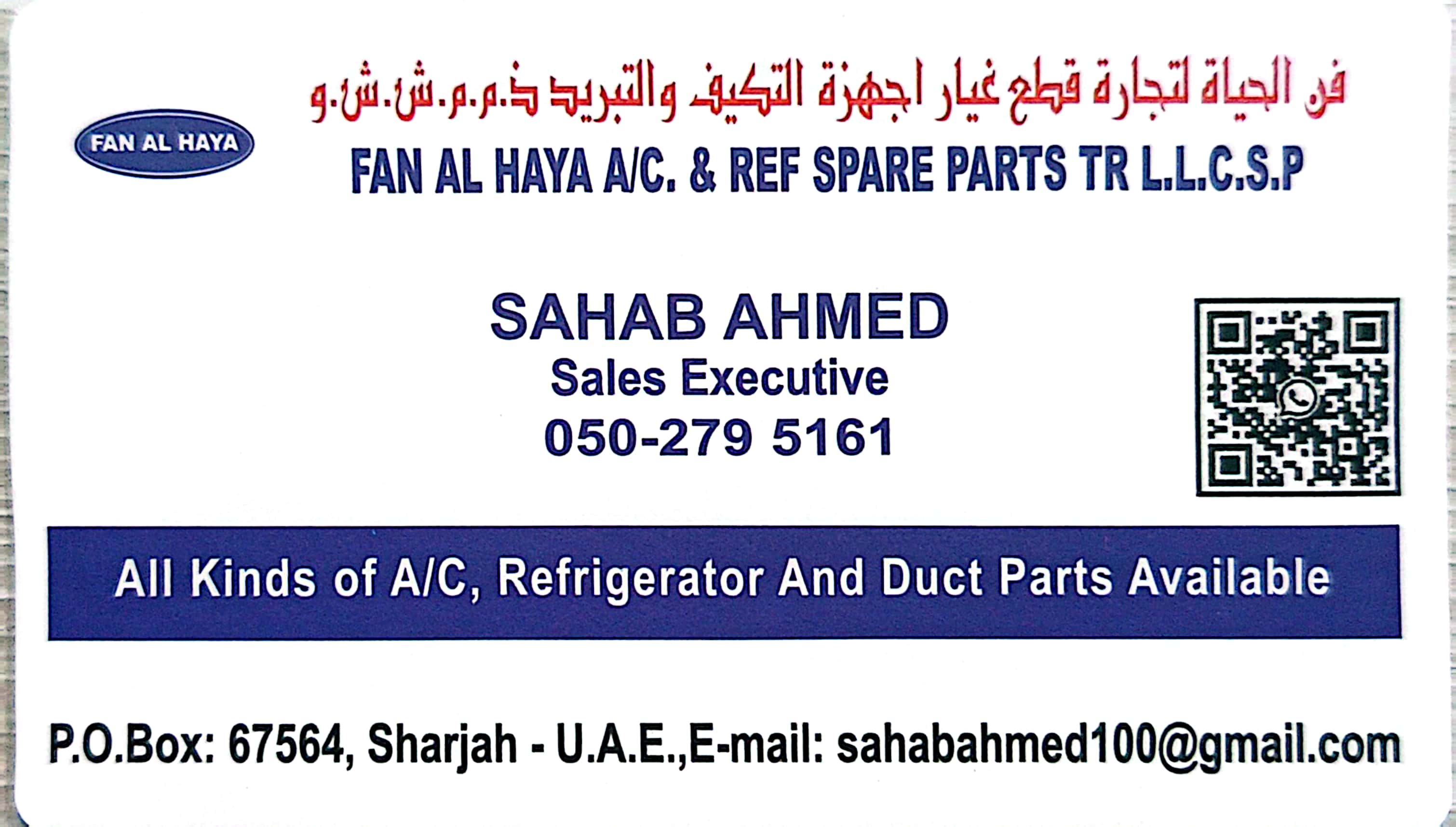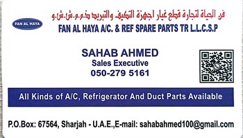 FAN AL HAYA AC & REF SPARE PARTS TR L.L.C S.PWe specialize in providing top-quality AC spare parts, refrigeration components, and duct parts at Reasonable Prices to meet all your HVAC needs. Whether you're a contractor, technician, or DIY enthusiast, we have the parts and equipment you need to keep your systems running smoothly.With a vast selection of genuine and aftermarket parts, we are your one-stop shop for everything from compressors and fans to duct fittings and filters. Our knowledgeable team is here to help you find the right solutions, ensuring your systems operate efficiently and reliably.