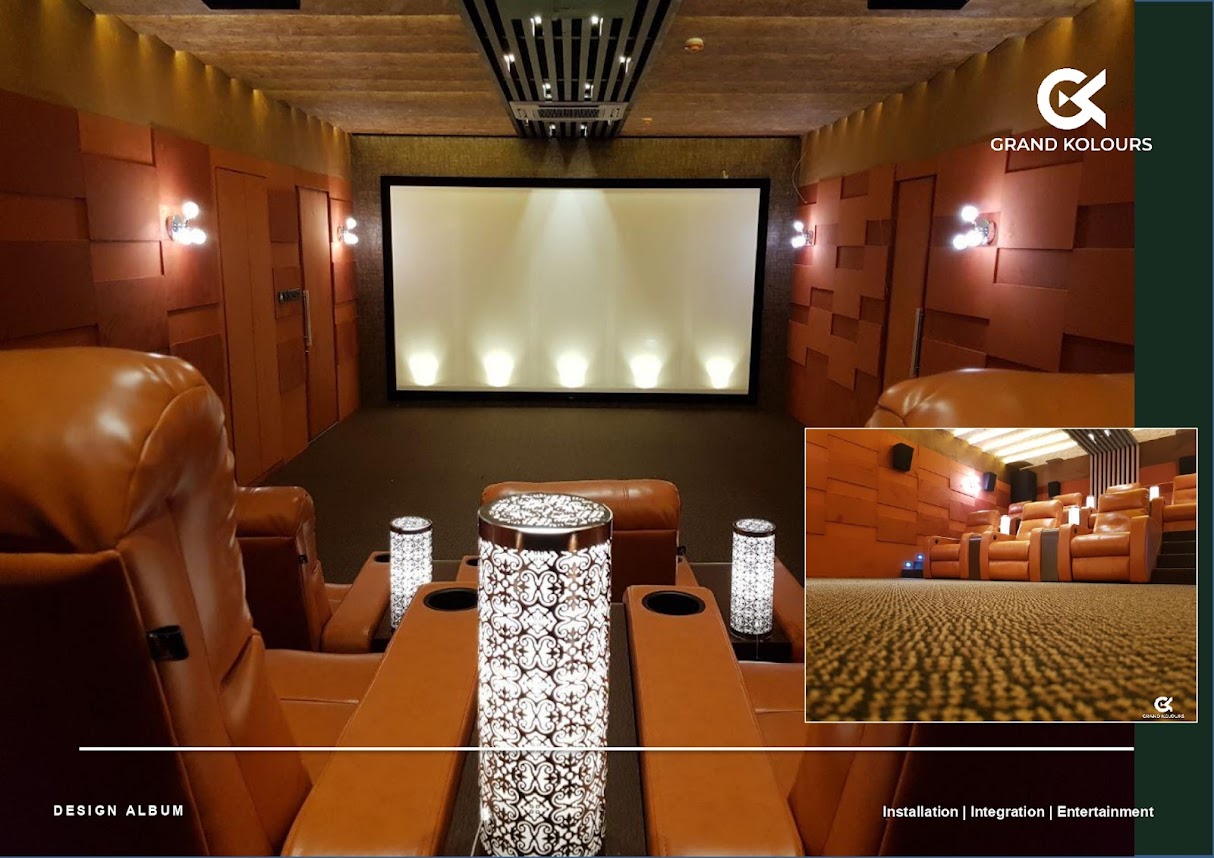 At Grand Kolours, we specialize in creating custom home cinema setups that are tailored to your specific needs and preferences. From projectors and screens to sound systems and seating, we have everything you need to create the perfect home cinema experience. We also offer a wide range of services, including Home cinema room design, Sound proof installation, Cinema room, lighting equipment installation, calibration, and repairs. We have a team of experienced professionals who are passionate about home cinema and are committed to providing the best possible experience to our customers. Apart from Home cinema, We also provide solutions for Home automation and Security, LED Displays, and Soundproofing.