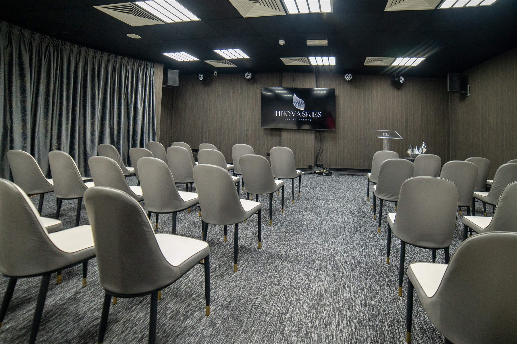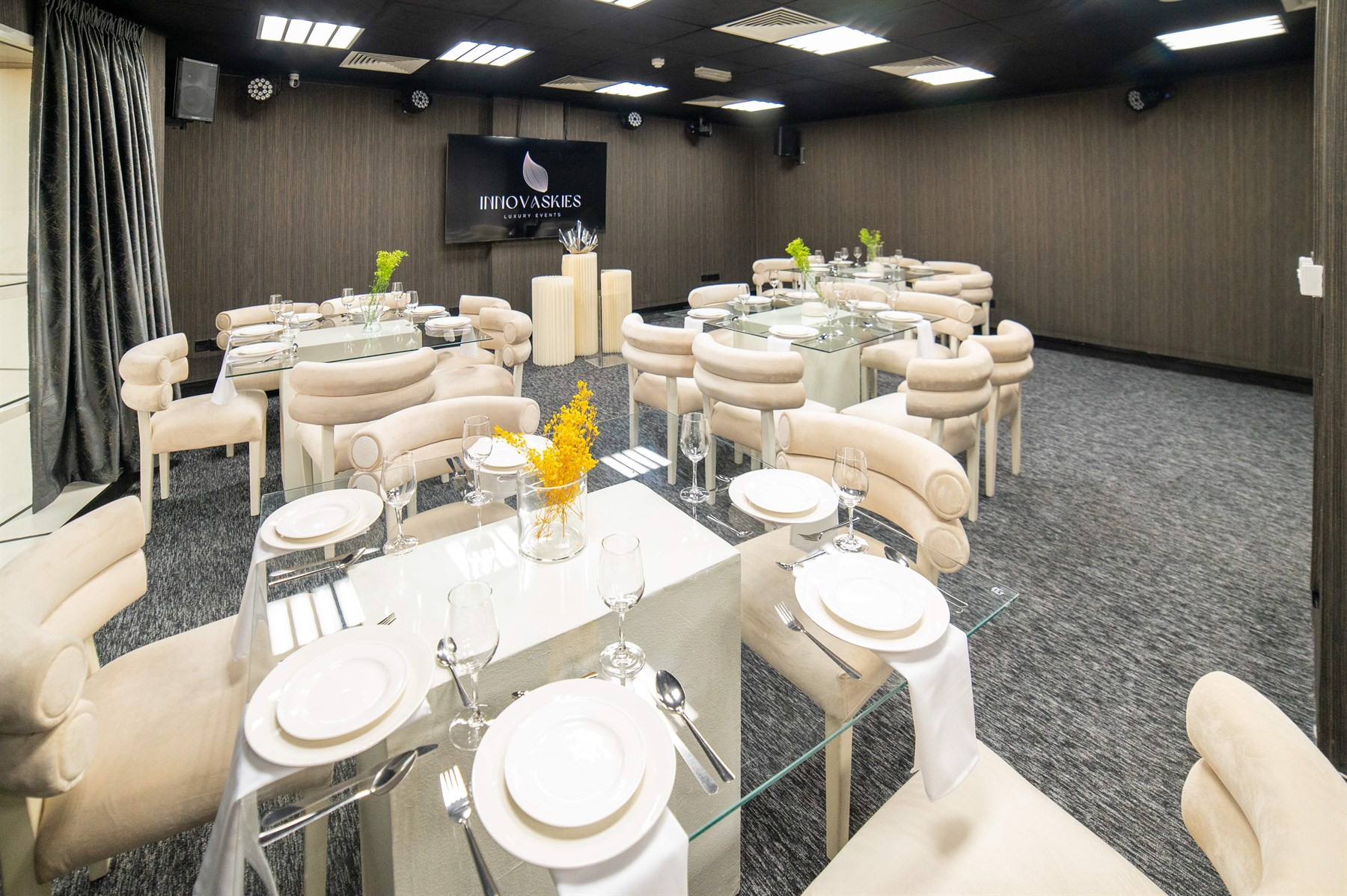 INNOVASKIES EVENTS can host various events from meetings to small conferences and even small weddings/ receptions. The venue can accommodate around 80-100 guests. The perfect venue for refined, elegant yet affordable functions. A multi-functional room with modern facilities: lighting, audio and visual equipment. All especially installed to suit all events needs. Premier catering and events consultancies. from weddings to corporate functions, receptions to gala dinners. Offering to our clients: An Ultra-Chic venue at an affordable price Refined cuisine World-class professionals and trained service staff Exquisite décor."