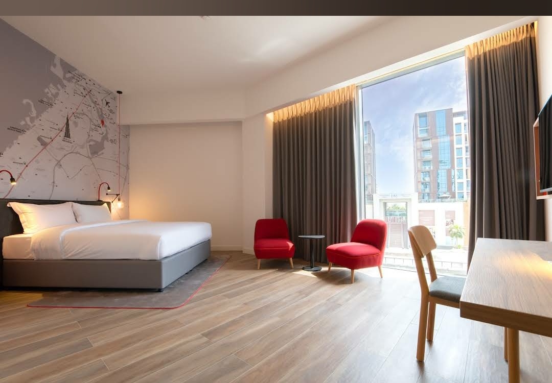 Located on the Dubai Jaddaf Waterfront, the first IntercityHotel in the United Arab Emirates is a great place to begin exploring this intriguing location. You can select between driving and taking the metro, or you can even take a boat across Dubai Creek, from this hotel's unique location.138 contemporary rooms, rooftop dining rooms with pool service, an outdoor kids' pool, terrace seating, a full breakfast buffet, a fully furnished rooftop fitness center, and accessible rooms are all available at the hotel. The lobby level's Dining Room serves drinks and snacks.A desk, 40-inch smart TVs with foreign channels, air conditioning, mini-fridges, tea and coffee makers, and other conveniences are included in every room. On request, an ironing board or iron.