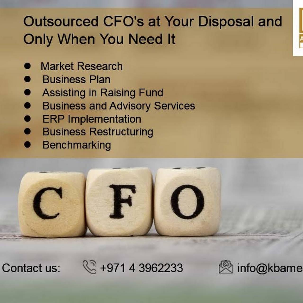 KBA is a certified Accountancy and VAT Consultancy company that offers a complete range of outsourced CFO services and finance solutions to companies across the UAE. Since our inception, we have built an excellent reputation for our world-class services and are trusted by countless clients all over the United Arab Emirates. https://www.kbame.com/cfo-services/