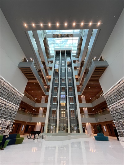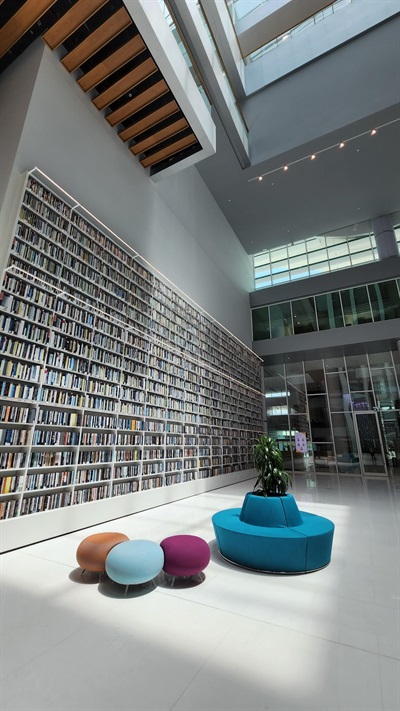 The main objective of the library, which was established in 2014, is to inspire a love of learning in all United Arab Emirates residents, especially among youth. Through our event calendar, high-quality information services, and free access to an exceptional selection of books and other knowledge resources, we actively promote and encourage reading, research, innovation, and entrepreneurship.Our library building, which faces Dubai Creek, is shaped like a rehl, the traditional wooden book rest used to carry the Quran. Our seven-story building is home to Dubai's most ambitious cultural project to date, creating a beacon of innovation, knowledge, and culture with the goal of expanding a collection by acquiring millions of books from around the globe.