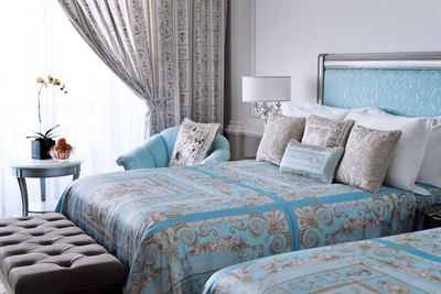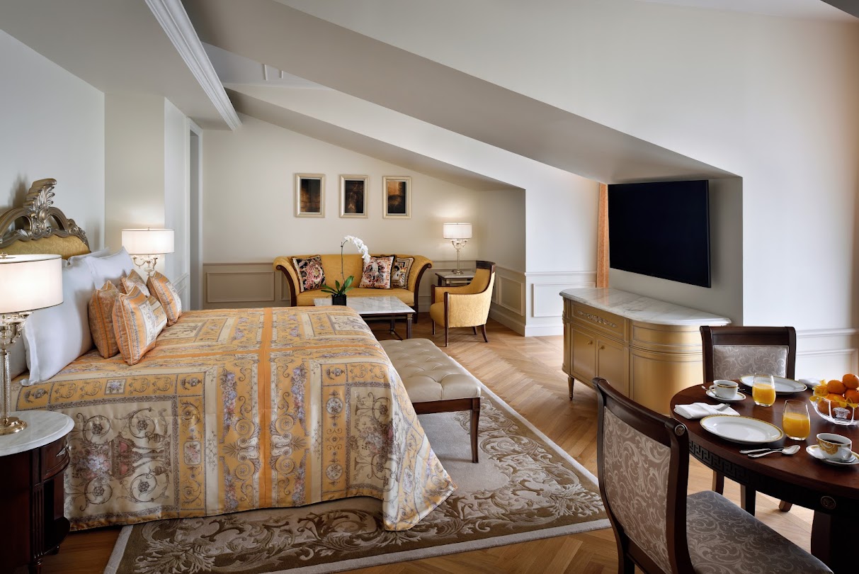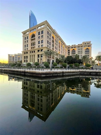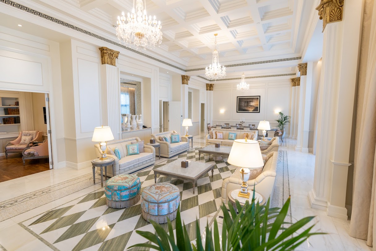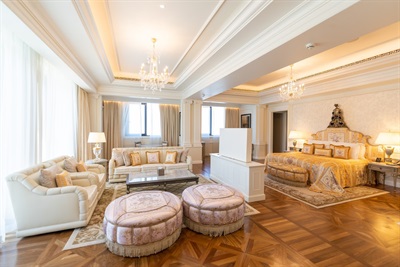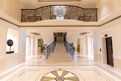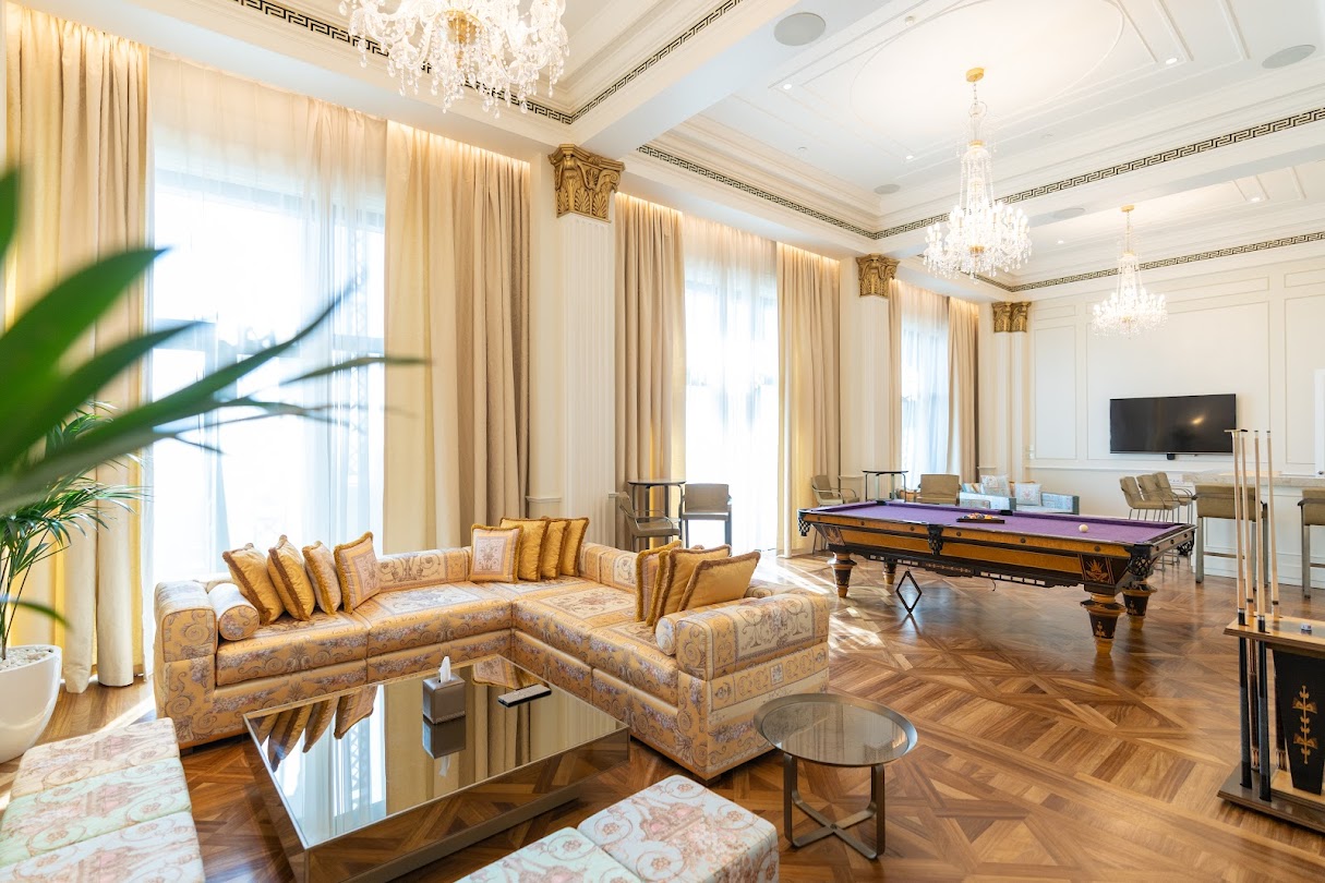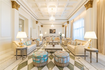 Reminiscent of a 16th century Italian Palace, Palazzo Versace Dubai is a Neoclassical masterpiece with subtle traces of Arabian architecture. Featuring a striking entrance, high ceilings, landscaped gardens, and a range of well-crafted Italian furnishings, the hotel is truly symbolic of the Versace lifestyle.Set in the heart of the Culture Village, less than 15 minutes away from Dubai International Airport and 8 minutes away from Burj Khalifa and Downtown Dubai, Palazzo Versace Dubai is conveniently located along the shores of the historic Dubai Creek. On arrival one is welcomed by the striking ‘Pietra di Fiume’ design of the iconic Medusa and Greek décor. A walk through the 5-star hotel’s public spaces reveals several exclusive designs and fabrics from the House of Versace, while the lagoon pools and reflection ponds complement the serenity of the lush gardens that surround the hotel – a true luxury retreat for leisure travellers.Every single piece of furniture and fabric that adorns the hotel’s 215 hotel rooms and suites, and 169 residences, is designed and tailor-made by the House of Versace exclusively for the Palazzo Versace Hotel in Dubai. Each of the hotel’s 8 restaurants and bars is designed to have an al fresco terrace to reflect the heritage of Palazzos, where the internal court was the informal space to meet, dine and enjoy the weather. The three outdoor pools are decorated with mosaic tiles and surrounded by palm trees and flowers. The beautifully landscaped gardens and unobstructed views of the Dubai Creek and skyline, make this luxury hotel an ideal venue for weddings and social events in Dubai.