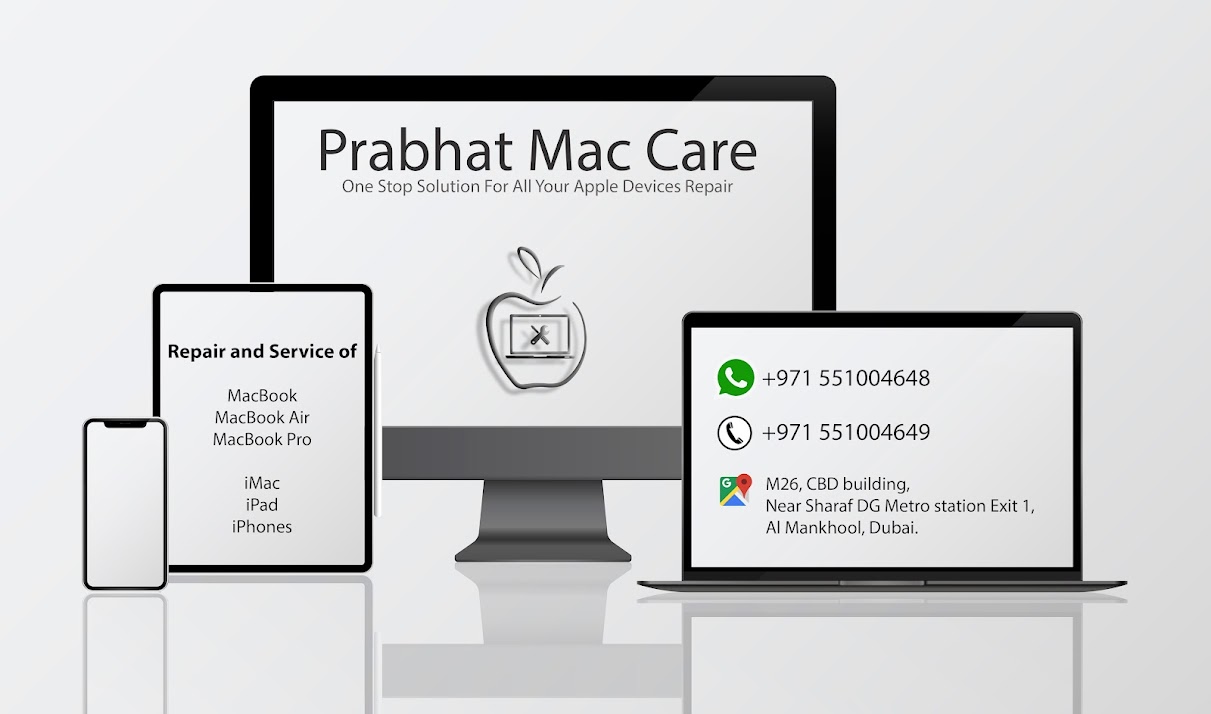 Prabhat Mac Care - Apple MacBook, iMac & iPhone Repair & Service Center Dubai. We specialize in MacBook, iMac, iPad, and iPhone repairs, including screen replacements, battery swaps, motherboard fixes, and more. Every repair is done with care using genuine parts to ensure lasting quality.
