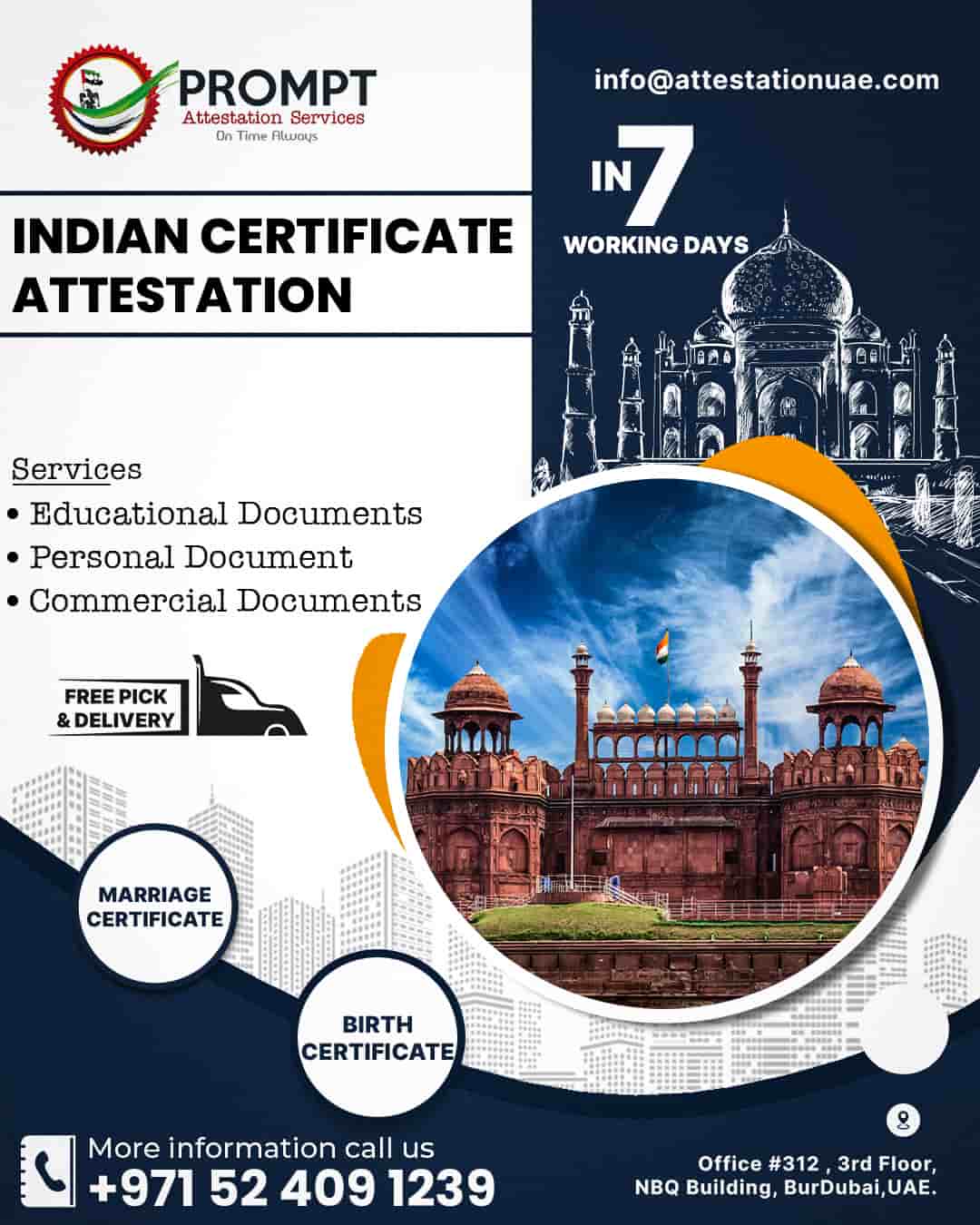 Prompt’s highly professional team will be glad to assist you with the certificate attestation in Abu Dhabi. The whole team is geared toward making attestation easy for you all.