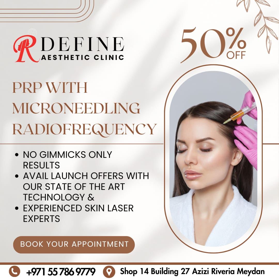 The clinic offers a wide range of services including Laser Hair Removal, Hydrafacial, CO2 Laser, RF Microneedling, PRP Therapy, Exosomes for Hair Loss, and IV Vitamin Therapy. With a team of experienced professionals and state-of-the-art technology, R Define Clinic is committed to delivering safe, effective, and personalized treatments.