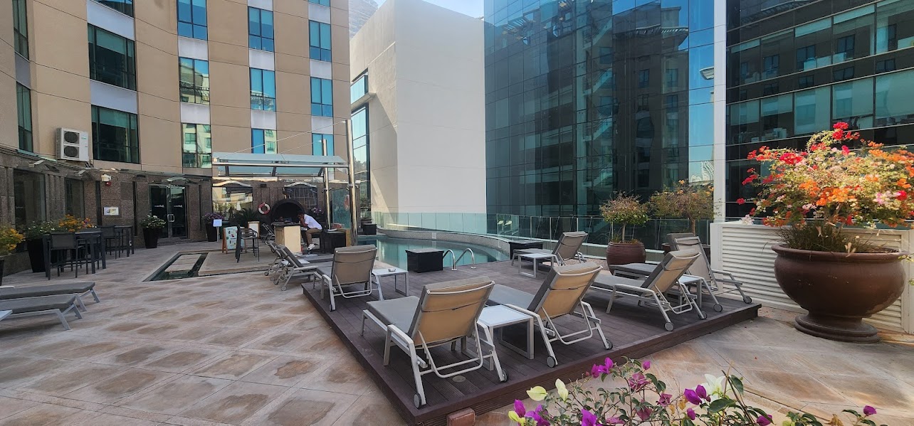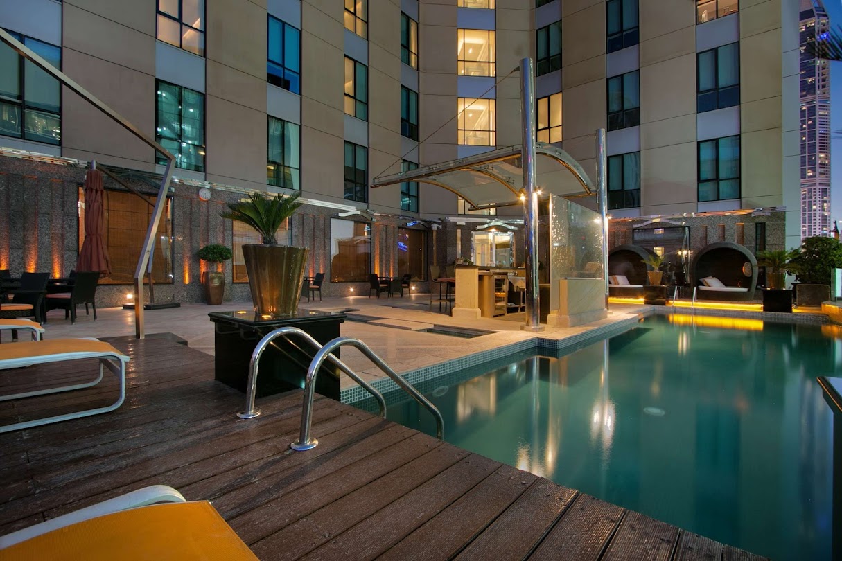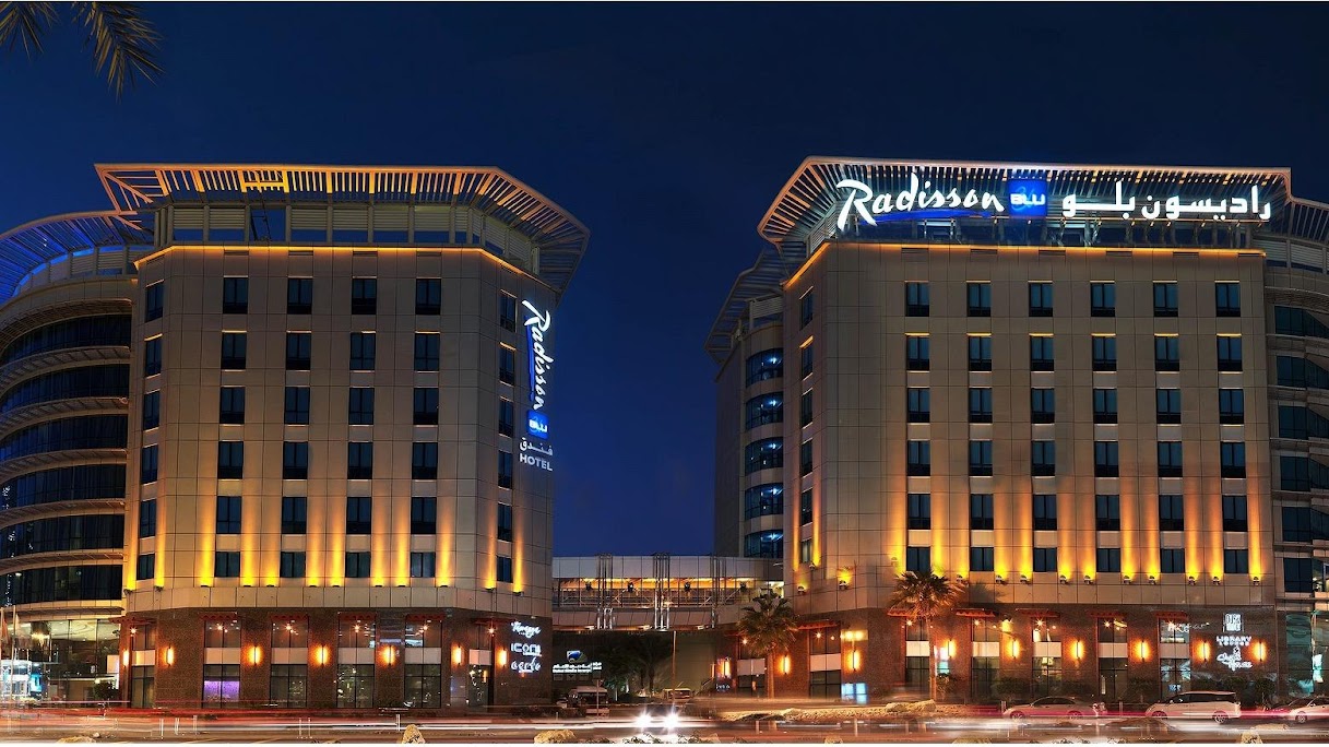 This modern property with its chic interiors and technologically advanced facilities is strategically located in the heart of Dubai's media hub. Whilst offering an exiting selection of F&B outlets and leisure options, it also provides some of the best conference and meeting facilities in the area. A beacon of cutting-edge style and sophistication, the Radisson Blu Hotel, Dubai Media City boasts elegant rooms and award-winning restaurants in the heart of Dubai Media City. Swarovski crystal chandeliers adorn the lobby and warm wood tones accent the lobby and guest rooms, creating an ambience that blends comfort and luxury. The Radisson Blu Hotel, Dubai Media City offers a great choice of food and beverage and recreation options, including two elegant outdoor swimming pools and Senso Wellness Centre with a state-of-the-art gym, making it the ideal destination to mix business with pleasure.The hotel is located in the heart of the Media City, close to the beach and excellent shopping areas. All 246 comfortable guest rooms and suites provide individual climate control and flat-panel LCD televisions with cable.Certo Italian Restaurant won top honours from the Accademia Italiana della Cucina for its sumptuous Italian dishes. A full-service Business Class Lounge affords private work space for Business Class and Suite guests.Guests and meeting delegates enjoy Free high-speed, wireless Internet access throughout this Dubai Media City hotel.The fully equipped fitness centre and two outdoor pools provide guests the perfect opportunity to unwind after a long day. Senso Wellness Centre offers exclusive beauty treatments in its five Asian-themed rooms.This hotel provides numerous services, including 24-hour concierge, airport transfers (at cost), car rental, sightseeing tours, and valet parking.This Dubai Media City hotel's 12 state-of-the-art meeting rooms are available, spanning a total of 582 m², the largest of which can accommodate up to 150 guests.