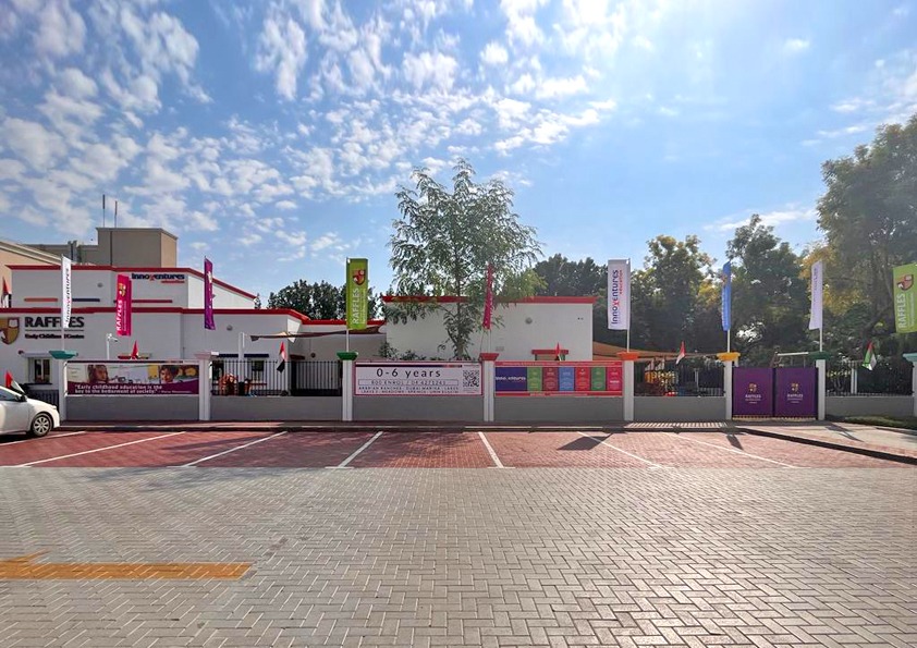 Welcome to Raffles Early Childhood Centre Springs , where we offer the Early Years Foundation Stage Curriculum to kids ages 45 days to 6. We are happy to welcome kids from the Springs as well as our larger neighborhood, which includes Meadows, Emirates Hills, Jumeirah Islands, Jumeirah Park, and beyond. Our cozy and friendly location is right adjacent to Springs Souk. When the weather permits, we make the most of the huge common outdoor space of our purpose-built center, which is spread across two blocks. Our learning is adapted to the needs of our somewhat older children in the second block, while the first block is specifically created with our smaller children in mind.