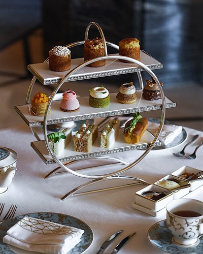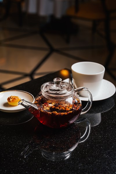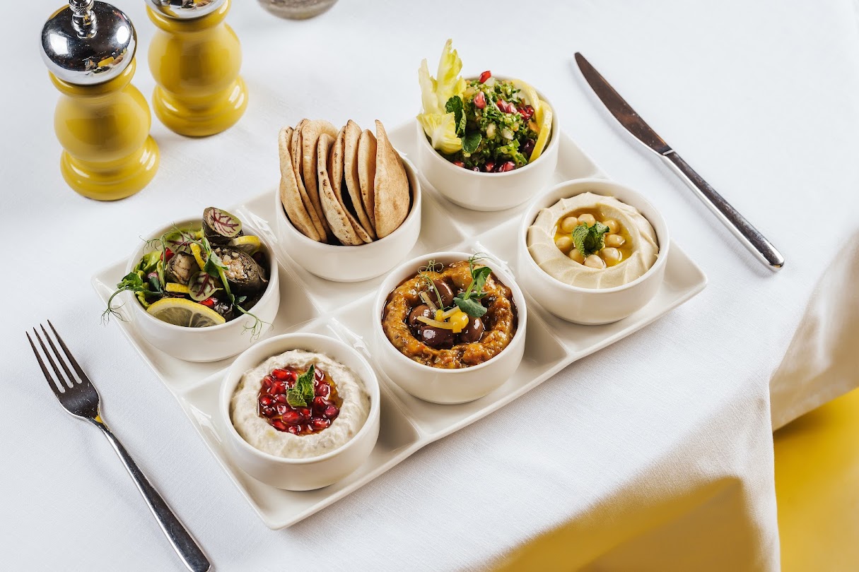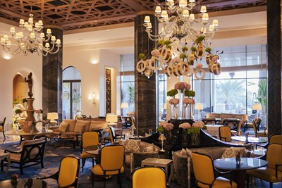 Our salon is the perfect spot to unwind, have some freshly brewed coffee or tea, and munch on meze plates under the elaborate lattice ceiling.
