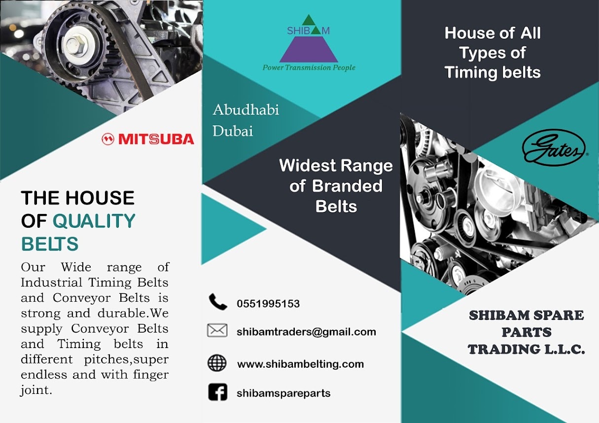 Shibam S p traders is standard retail and dealer of belting products and one of the best automotive industry in Abu Dhabi. We are committed with different type of belting products like Mitsuba, Gates transmission, drive belt, Automotive timing belts, Cogged V-belts, V-ribbed belts, double-sided timing belts, industrial v belt type. We provide a high quality and wide range of belting item to the requirement of the company. We have stock of Polyurethane and Rubber products. Our delivered all the item convenient and secure to the society.