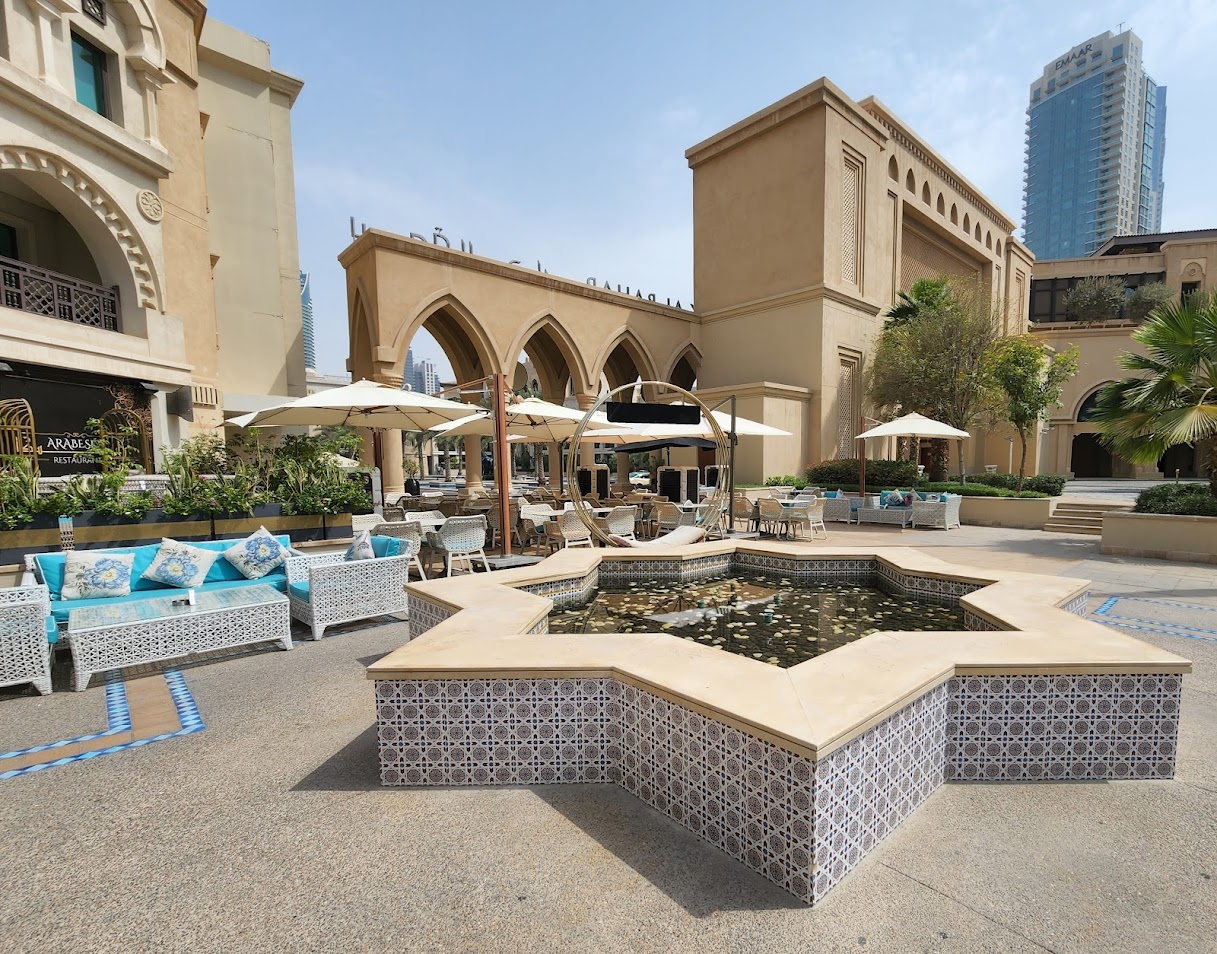 Souk Al Bahar (‘market of the sailor’) is an Arabesque shopping, entertainment and dining destination located in the heart of Downtown Dubai. Easily accessible through a stunning walkway from modern Dubai Mall, Souk Al-Bahar transports the visitor into ancient Arabic heritage and community. Its over 100 shops include 22 restaurants, cafés and lounges, mostly located along the souk’s extensive waterfront promenade overlooking the majestic Dubai Fountain and the world’s tallest building –the Burj Khalifa.A visit inside Souk Al-Bahar is an experience in itself. Natural stone corridors, high archways, subdued lighting and arabesque decors of rhythmic linear patterns contribute to its charm. Its alleyways are lined with various shops - an eclectic mix of authentic handicrafts, jewelry, fashion wear, perfumes, carpets, furnishings, sports items, books; and the conveniences of modern times- from groceries to exchange houses. The smell of freshly baked bread from a nearby deli, the quiet cozy ambiance of a coffee shop, the delicate scent of spice and oils make the visit a feast for the senses. This combination of tradition and heritage, convenience, superb location, and exquisite dining experience makes Souk Al Bahar a vibrant waterside must-see destination.
