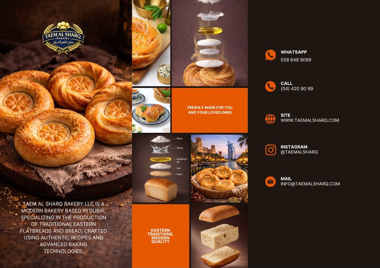 Taem Al Sharq Bakery LLC is a Dubai-based manufacturer and supplier of authentic Central Asian and Eastern European baked goods and frozen foods. We produce a full range of traditional tandoor flatbreads, artisan breads, and ready-to-cook frozen products — including samsa, pelmeni, vareniki, and manty — crafted with time-honored recipes and quality ingredients.Serving the UAE's HoReCa sector, corporate caterers, and food distributors, we combine the warmth of traditional baking with the efficiency of modern food production. From our kitchen to your operation, we deliver consistent quality, competitive pricing, and reliable supply — making authentic Eastern flavors accessible at scale.