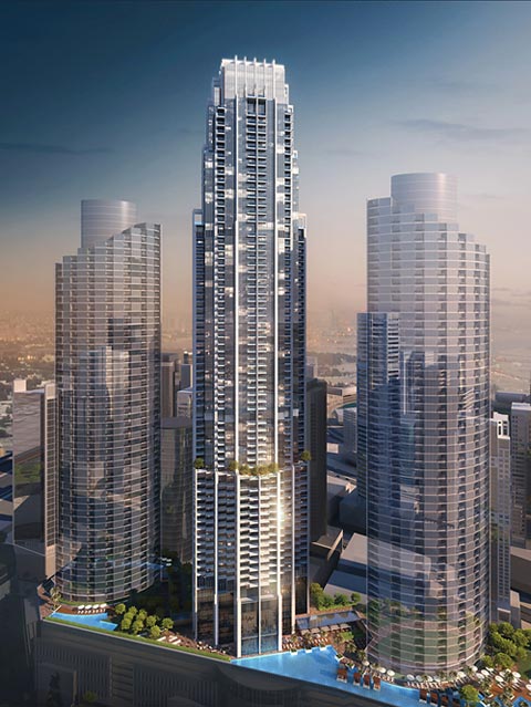 The Address Fountain Views Tower 1 is one of the 3 towers that make up The Address Fountain Views located in Downtown Dubai.The Address Residence Fountain Views offers unrivalled luxury in the heart of Downtown Dubai, serviced by the address hotels + resorts.The Address Residence Fountain Views, launched in 2013 in Downtown Dubai, is the first dedicated serviced residence complex in the 500-acre mega-development.Elegantly designed by an international team of architects, The Address Residence Fountain Views is a three-tower complex overlooking Burj Khalifa and The Dubai Fountain.The 60-storey towers offer 788 serviced apartments while a new Address hotel is home to 194 rooms. The Address Residence Fountain Views offers a choice of spacious one, two, three, and four-bedroom apartments, as well as duplex apartments and penthouses as part of its Sky Collection.As an integral part of the expansion of The Dubai Mall, The Address Residence Fountain Views is directly linked to the world’s largest shopping and entertainment destination through the metro link.Embracing a sense of duality, The Address Residence Fountain Views is both a gateway between commercial and residential zones in Downtown Dubai and an aesthetically striking work of architecture designed to respond to its environmental context with a delicate balance of solidity and transparency.Amenities include a fully equipped health club and a rooftop recreation deck complete with landscaped amenities and water features. The swimming pools cater for lap and family swimming plus wet-deck lounging. A shaded children’s pool supplement the family pool, and together with the lawn and play zone ensure that children are well catered for.As an integral part of Downtown Dubai, The Address Residence Fountain Views residents become part of one of Dubai’s most happening lifestyle destinations. A major attraction is The Dubai Fountain, a captivating musical water spectacle and the world’s tallest performing fountain.The Address Residence Fountain Views serves as the home next-door to corporate offices in Downtown Dubai’s Emaar Square, Boulevard Plaza, The Corporate Suites in Burj Khalifa, The Offices, and Al Saha Offices in The Old Town Island.Residents also have easy access to world-class hospitality and leisure facilities including Armani Hotel Dubai, the world’s first Armani Hotel located in Burj Khalifa; The Address Downtown Dubai; The Address Dubai Mall; The Palace Downtown Dubai; Manzil Downtown Dubai, and Vida Downtown Dubai.Burj Park is a spectacular green heart of Downtown Dubai, where residents can unwind in the evenings or join family and friends to watch the spectacular Downtown Dubai New Year’s Eve Gala and other celebrations.