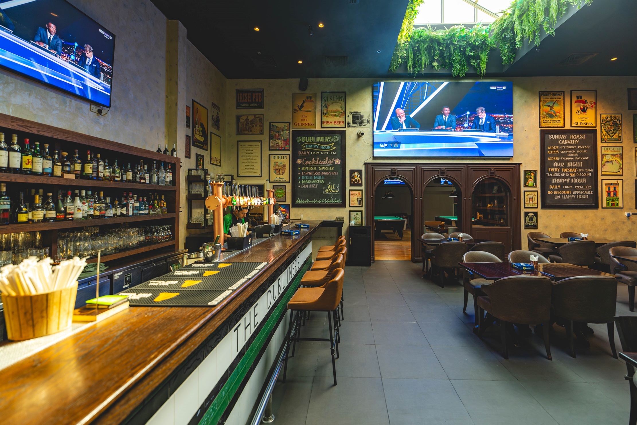 Nestled in the heart of Garhoud, Dubai, The Dubliner's Irish Pub presents a warm, inviting atmosphere that echoes the genuine charm of Ireland. Renowned as one of the best pubs in Dubai, this venue offers a unique blend of traditional Irish culture and lively entertainment, making it a premier destination for both locals and tourists seeking the quintessential Irish bar experience.This Irish pub near you in Garhoud Dubai is not just about great food and music. It's a bustling hub for sports enthusiasts. With wide-screen TVs strategically placed throughout the venue, guests can catch live sporting events including football, rugby, cricket, and tennis. It's the perfect spot to enjoy high-profile games and cheer on your favorite teams with fellow sports fans.