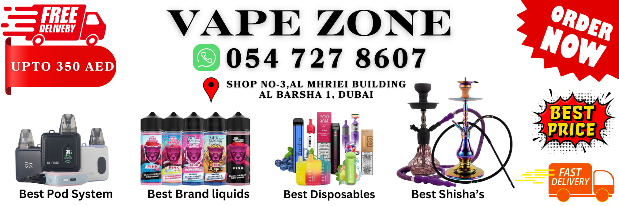 Vape Zone Al Barsha is Number One best retail vape shop in Dubai – The Best Online and largest Physical Vape store in UAE. Vape Zone is a great place to start your search. We are #1 for fast delivery, Best Quality products, Awesome Customer service and Replacement offers. Card Payment on Delivery Available. Among all the vape shops online in Dubai.Looking for a convenient, high-quality e-cigarette at the lowest possible price vape shop near me in the United Arab Emirates? Vape zone UAE is your most fantastic option for authenticity, offering only high-quality products from renowned brands while proudly making e-cigarettes, e-liquids, and nicotine salts for a one-of-a-kind vaping experience.Our esteemed clients across the UAE have received top-tier vaping products we have successfully procured and supplied. To meet all of your vaporizer and electronic cigarette needs, visit our Disposable vape shop al barsha in Dubai. For the lowest online prices, you may get starter kits, pods, e-cigarettes, and vape systems here. We have you covered whether you want to buy an electronic cigarette in Abu Dhabi or want to get your hands on an electronic shisha in Dubai. We want to enhance the convenience, quickness, and enjoyment of online vape product purchasing. To improve your experience, you need to have a few things on hand, such as the exemplary apparatus, some excellent e-liquid, and contemporary add-ons. The good news is that Vape zone UAE, the best vape shop in Dubai, specializes in providing you with all those products at unbelievable costs.We offer delivery all week days (From 10:00 AM till 11:30 PM, Express Delivery Service available (For Dubai Only) for AED 40, for orders placed from 10:00 AM till 9:00 PM and Free Delivery for any order Net value is 350 AED and above.