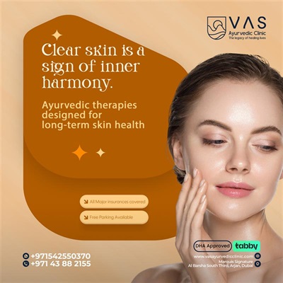 VAS Ayurvedic Clinic – Best Ayurvedic Clinic in Dubai – offers holistic healing through time-tested therapies like Shirodhara, Abhyangam, Panchakarma, Udwarthanam, Greeva Vasti, Takradhara, Podikizhi, and more. We provide personalized care for stress, lifestyle disorders, women's wellness, detox, pain relief, and rejuvenation. Restore balance, boost immunity, and experience natural wellness at VAS.Skin care with Ayurveda and VAS focuses on treating skin concerns naturally by addressing the root cause. Using authentic Ayurvedic therapies, herbal formulations, and VAS treatments, we help manage acne, pigmentation, eczema, psoriasis, premature aging, and dull skin. Our approach balances doshas, detoxifies the body, and promotes long-term skin health without harsh chemicals.