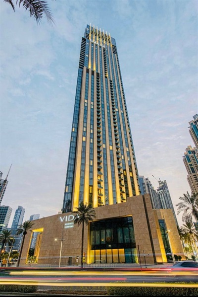 The 57-storey Vida Residence Downtown Dubai will be linked directly to Vida Downtown Dubai, a stylish hotel opposite Souk Al Bahar, via an air-conditioned glass bridge.