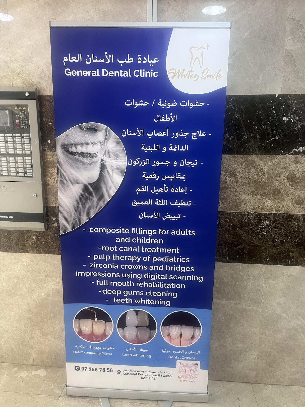 White Smile Medical Center in Ras Al Khaimah offers top-quality dental care with a wide range of services. Our general procedures include pain relief, cavity treatments, root canals, restorative fillings, and zirconia crowns. We specialize in orthodontics with braces, clear aligners, and active appliances for misaligned teeth. Dental implants feature the Swiss Straumann system and advanced 3D imaging. Our radiology services provide panoramic, CBCT, and cephalometric X-rays for precise diagnoses. We also excel in dental cosmetics with feldspathic veneers, zirconia crowns, and bridges. At White Smile, we combine expertise and innovation to create healthy, confident smiles.